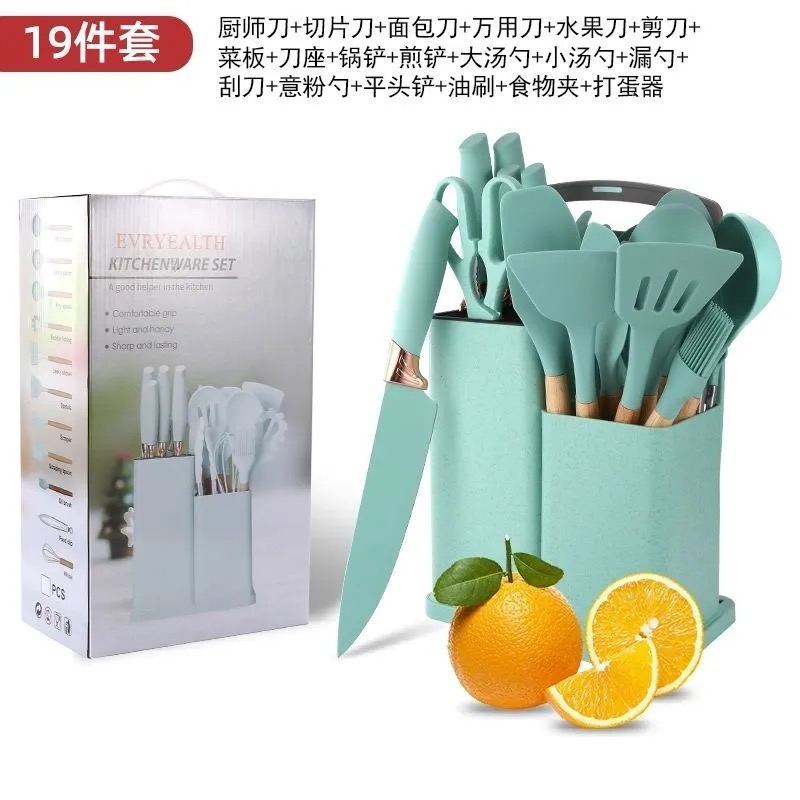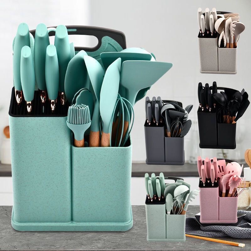 Transform your cooking experience with this all-in-one professional kitchenware set. Finished in a refreshing mint green, this comprehensive 19-piece collection combines precision-engineered cutlery with high-performance silicone utensils to cover every culinary task from prep to plating. Designed for both comfort and durability, each tool features an ergonomic grip for effortless handling.